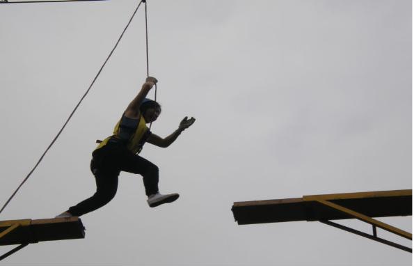 “跨越断桥”是本次训练中个人挑战最大的项目,所有的人,在有保护的情况下,爬上断桥,做两次跨步跳(跳过去,再跳回来),一米二的距离并不是难以跨越,但当这个距离被移至十米的高空则带来了巨大的恐惧感,这一次跨越中成员们不仅战胜了恐惧,更战胜了自己。